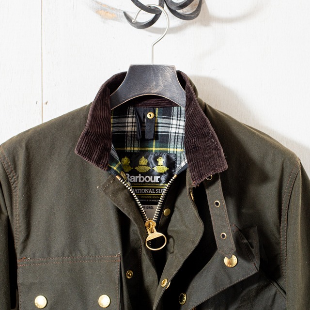 ▼モデル Northumbria (ノーザンブリア) ▼メンテナンス概要 ・クリーニング / 済 ・ポケット内洗浄,残置物、内布ダメージ確認 / 済 ・ジッパー根本損壊有無&動作確認 / 済 ・ハンドウォーマーポケット端部ほつれ確認 / 済 ・ボディ縮み発現率 / 85%以上 ・リワックス/ 色味美麗のため未施工 ※リワックスご希望の場合購入時備考にて申込で無料 ・リペア施工箇所 / 無 ▼年代 1996年製 ▼カラー sage ▼サイズ C46 肩幅 : 56cm 身幅 : 74cm 裄丈 : 93cm 着丈 : 93cm 脇下から袖先: *実寸値は計測方法により誤差が生じる場合がございます。 ▼モデル説明 これまでのオーバーコートとしてのアプローチとは異なりジャケットとしての設計で1979年に登場したモデル。 厳しい寒さの中でツイードの上に被せる防寒着としてでなく、それ自体が暖かく快適に過ごせるなアプローチ。 表地には標準より厚い8オンスのワックスコットンと、裏地にはBarbourのモデルの中で唯一ウールライニング “Mackinnon Hunting”が採用されているNorthumbria。 セットインスリーブにスリークォーターレンクスの作り、これを凛とした張りのあるヘビーオンスのワックスコットンで誂えより背筋が伸びるような佇まいに。 袖を通すたび、”質実剛健”の言葉が浮かぶようなモデルです。 ▼etc. ・本商品はヴィンテージの商品となります。 状態など細かく記載するよう努めておりますが、網羅しきれていない点がある場合がございます。 ・オンラインおよび店頭などで同時販売中の為、販売成約となった際はご容赦くださいませ。 *お問合せ先 Mail : [email protected] DM : @britishwaxjacketmarket