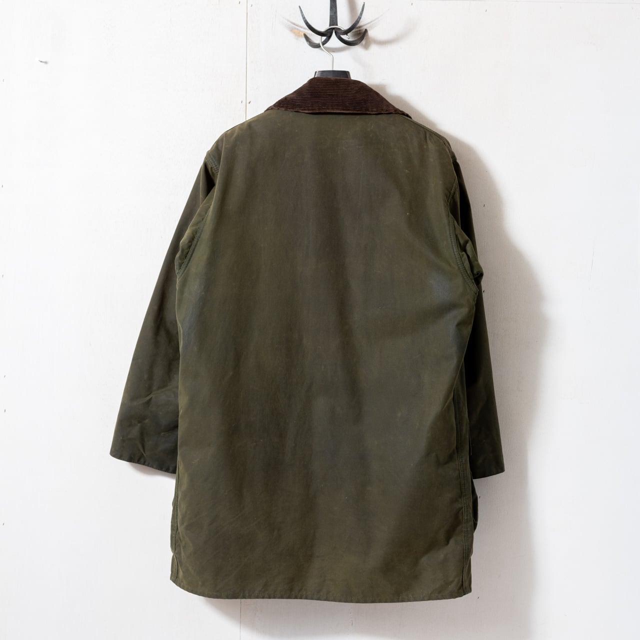 セットインスリーブにスリークォーターレンクスの作り、これを凛とした張りのあるヘビーオンスのワックスコットンで誂えより背筋が伸びるような佇まいに。