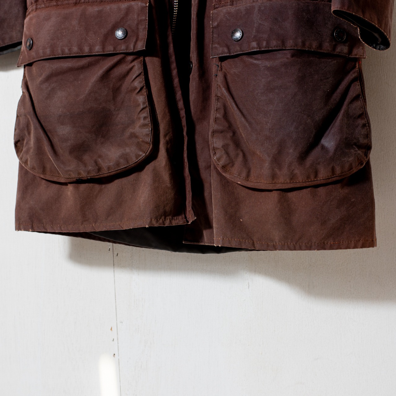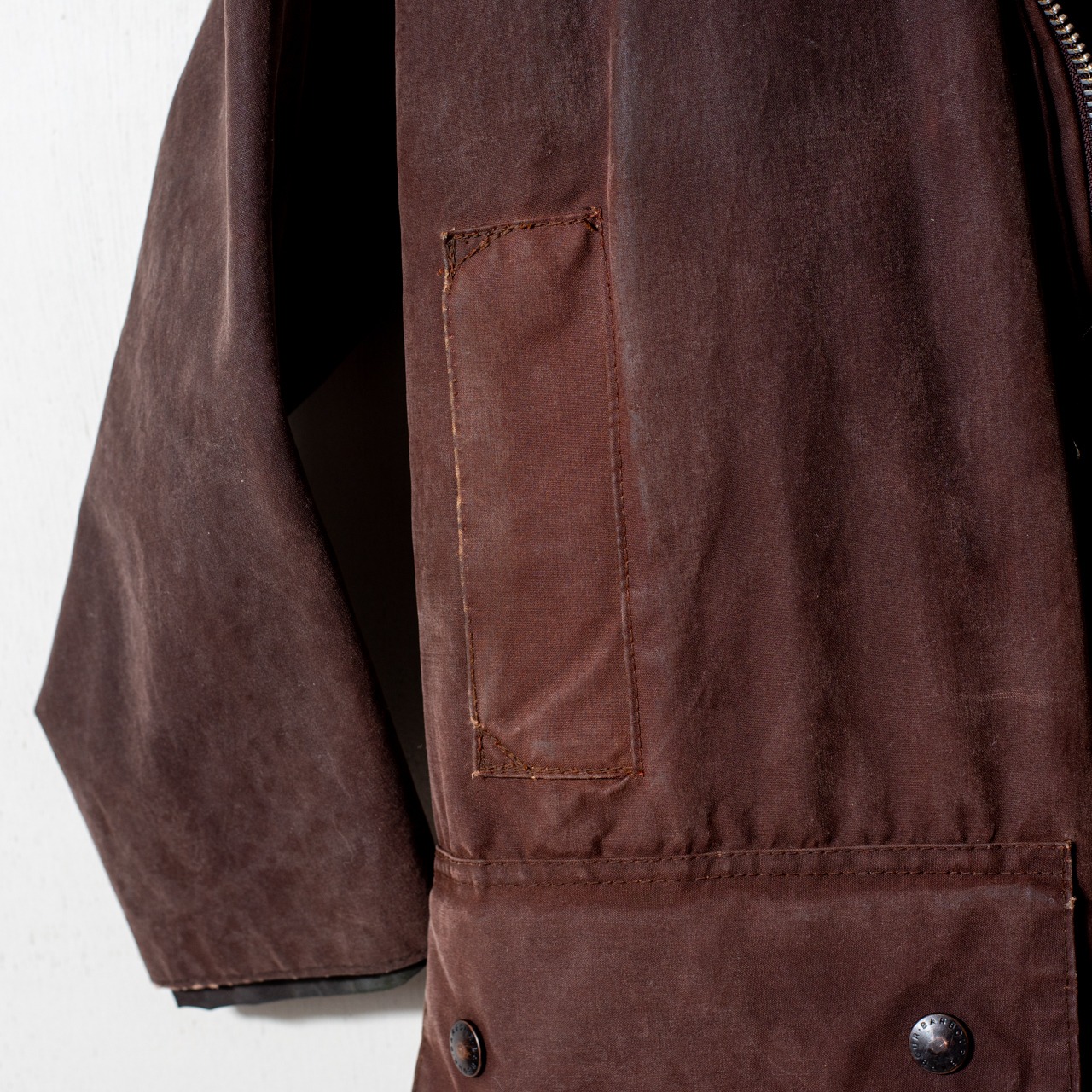 セットインスリーブにスリークォーターレンクスの作り、これを凛とした張りのあるヘビーオンスのワックスコットンで誂えより背筋が伸びるような佇まいに。