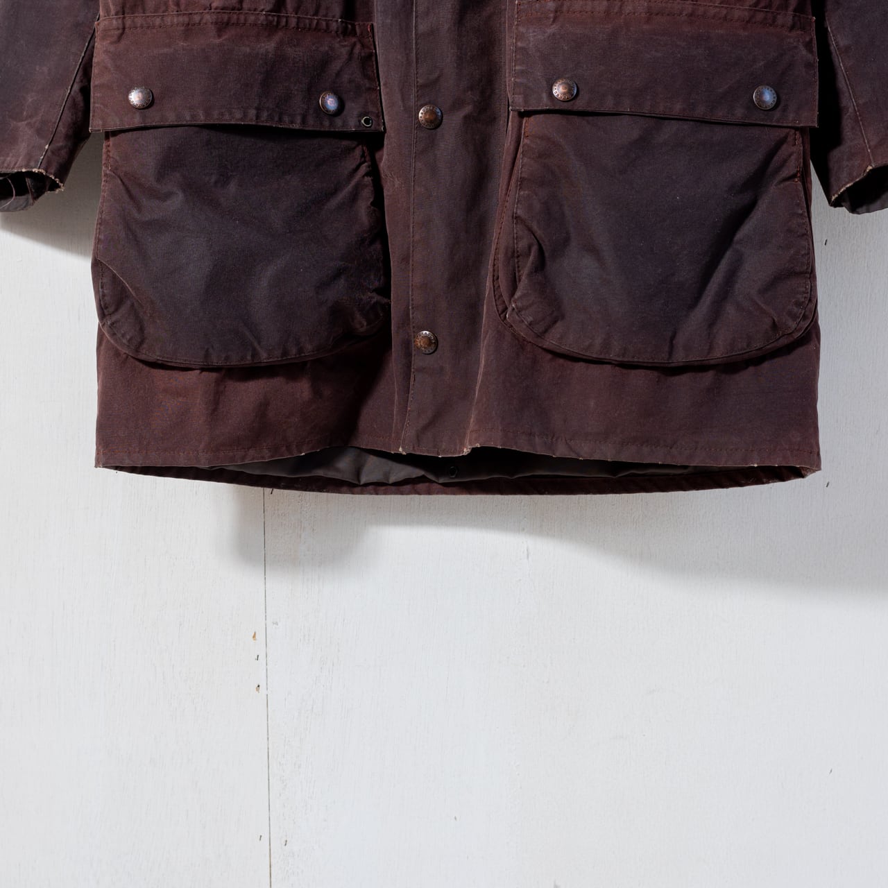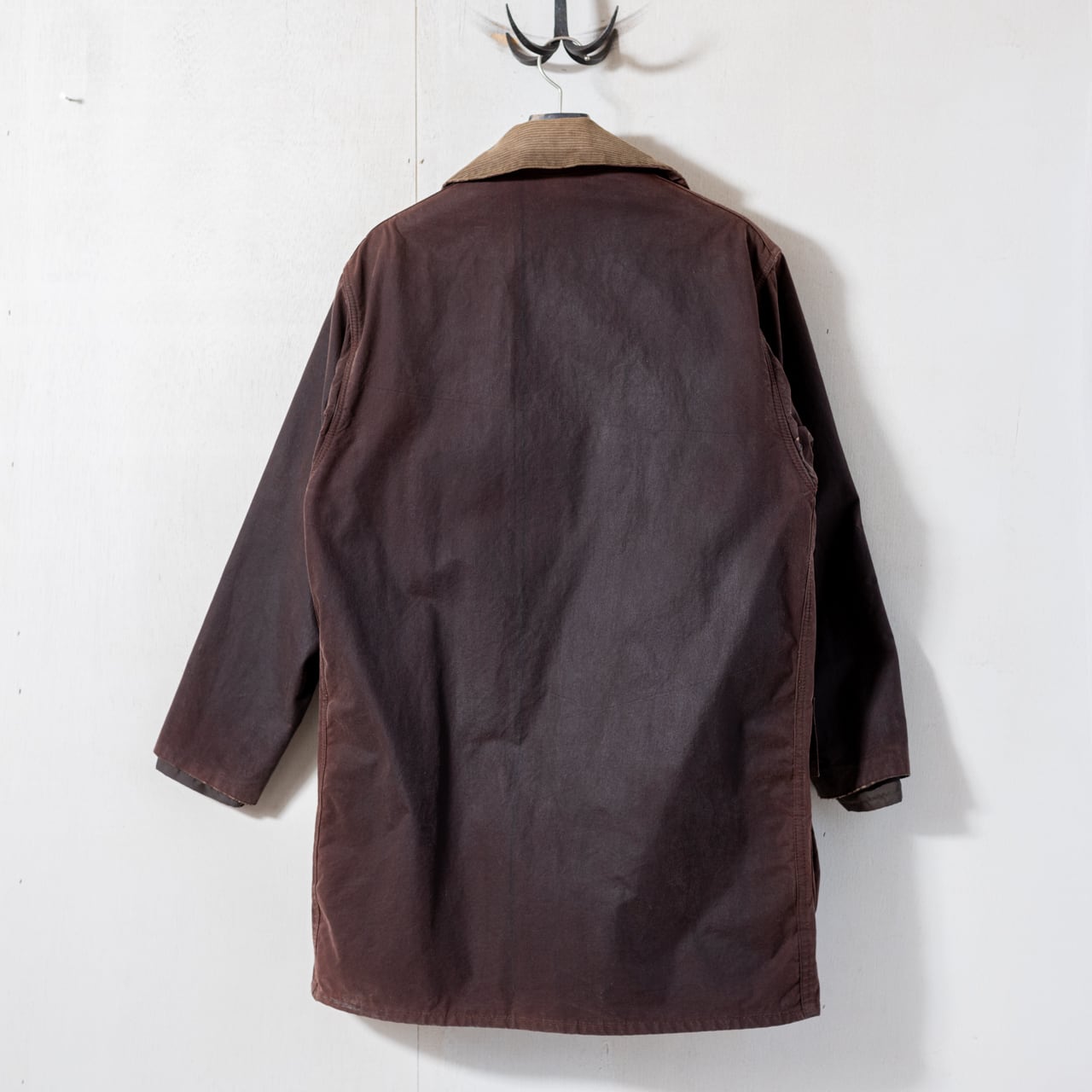セットインスリーブにスリークォーターレンクスの作り、これを凛とした張りのあるヘビーオンスのワックスコットンで誂えより背筋が伸びるような佇まいに。