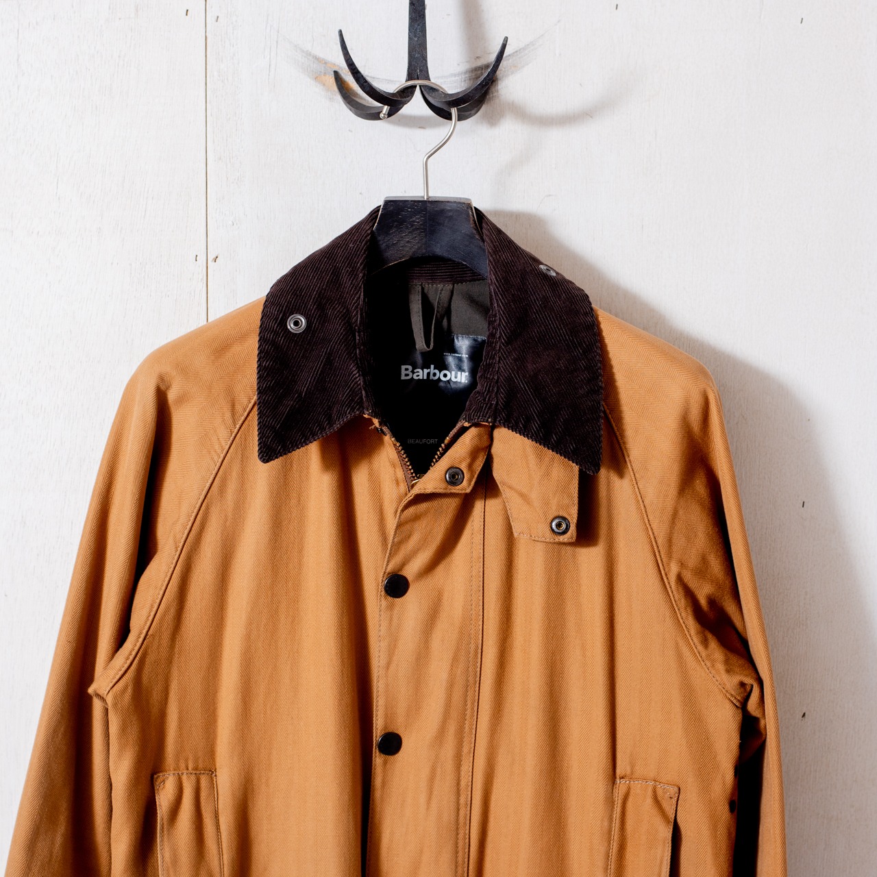袖先もビデイルの重厚なリブより簡易的なベルクロ仕様の風除けが採用されているため、現代ではカジュアルフォーマル用のオーバーコートとしても理想的な作りです。