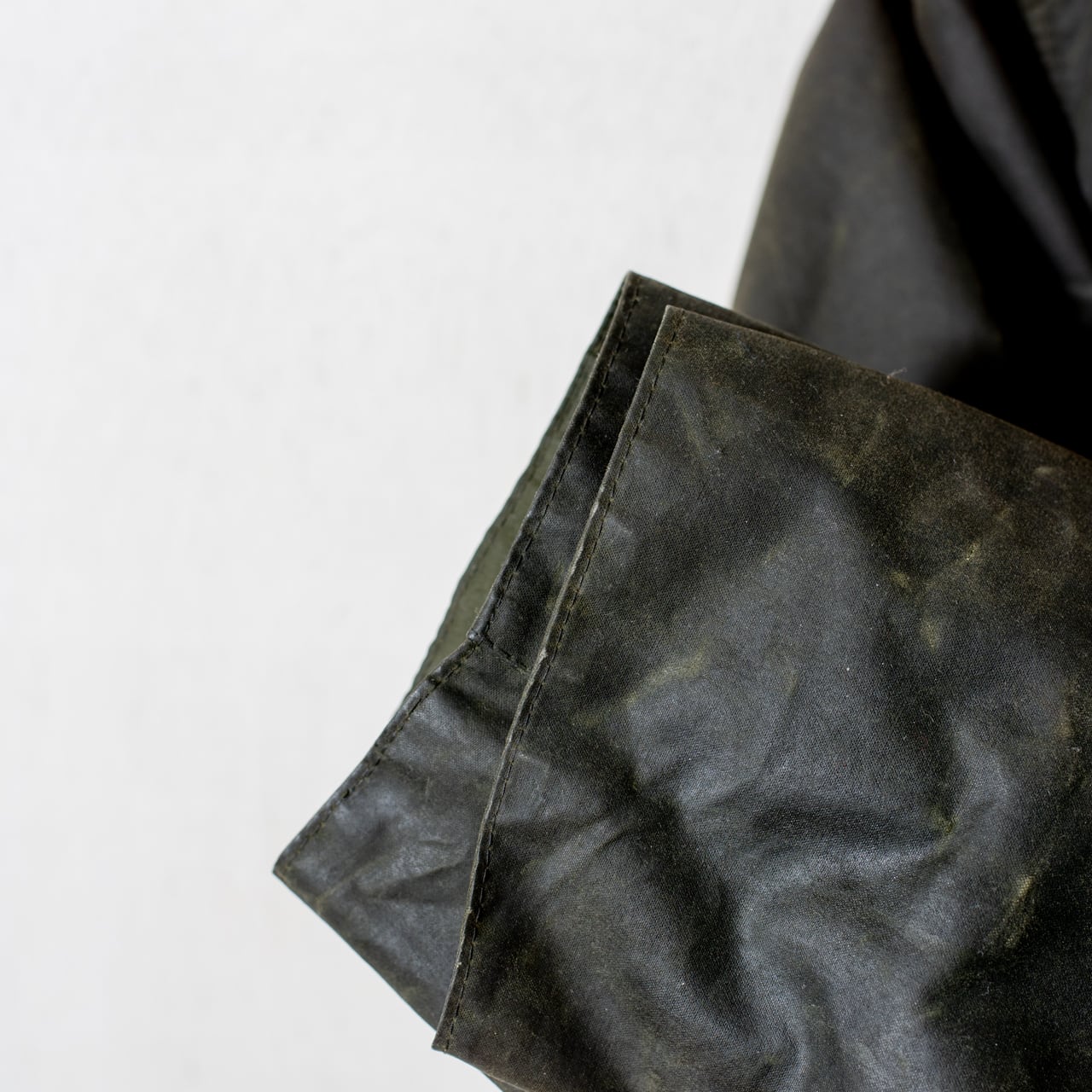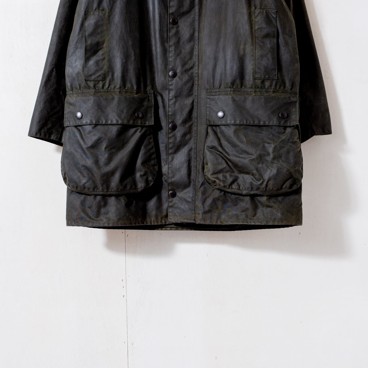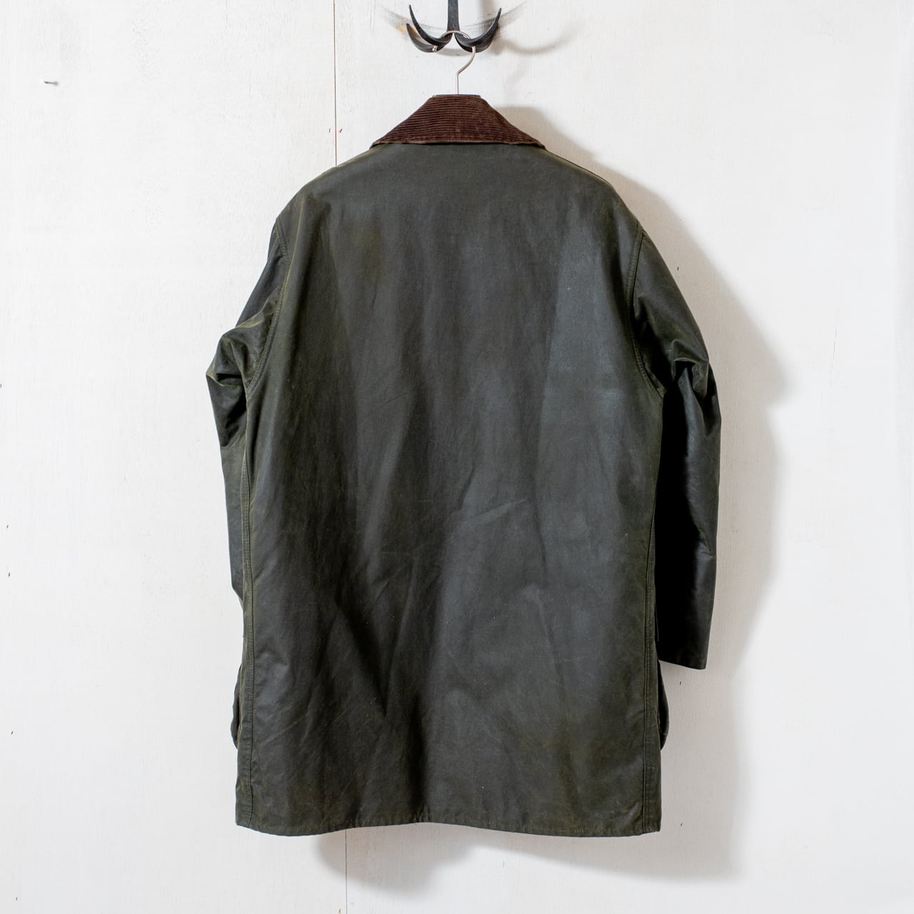 セットインスリーブにスリークォーターレンクスの作り、これを凛とした張りのあるヘビーオンスのワックスコットンで誂えより背筋が伸びるような佇まいに。