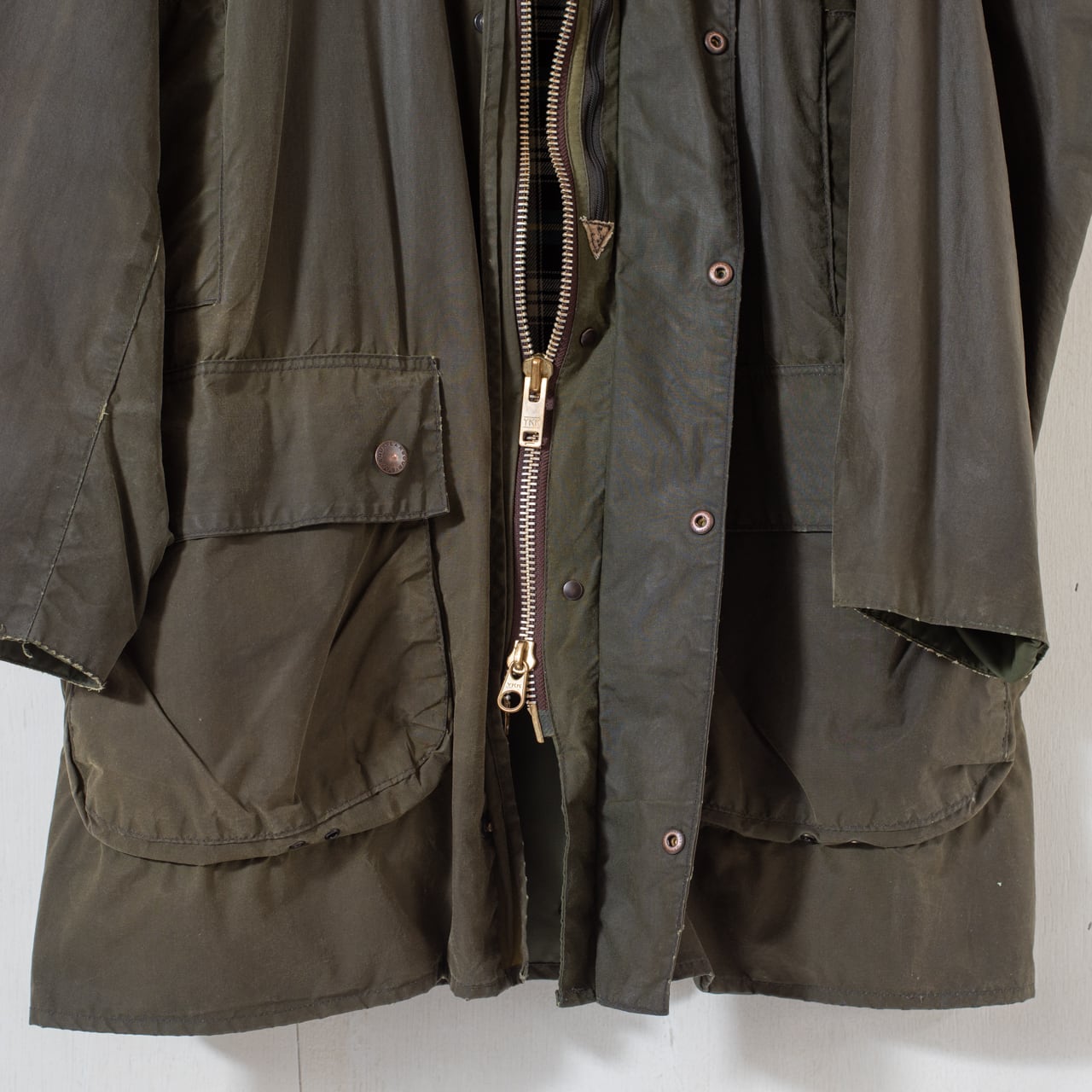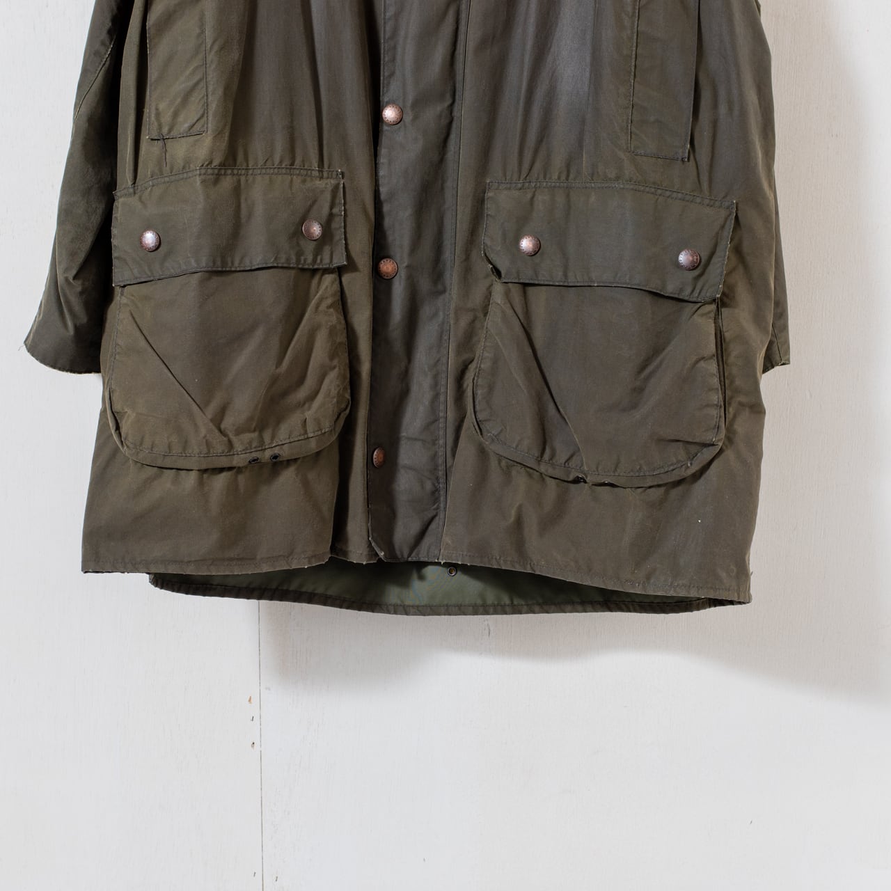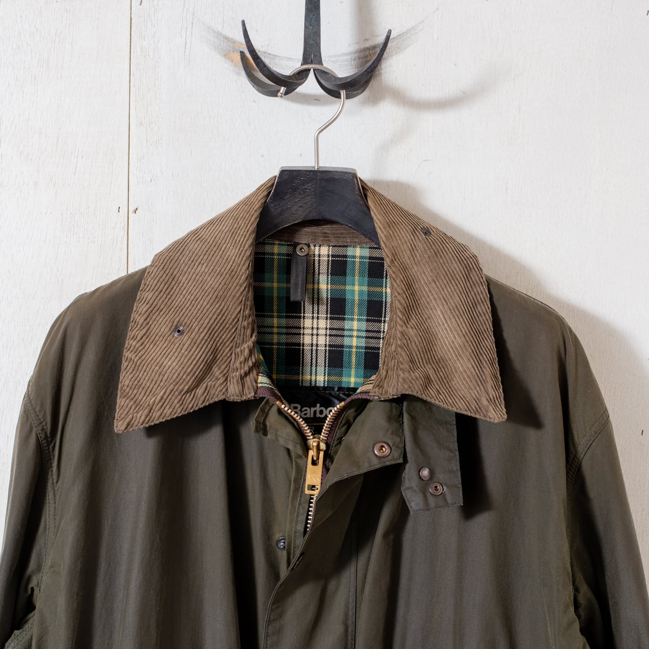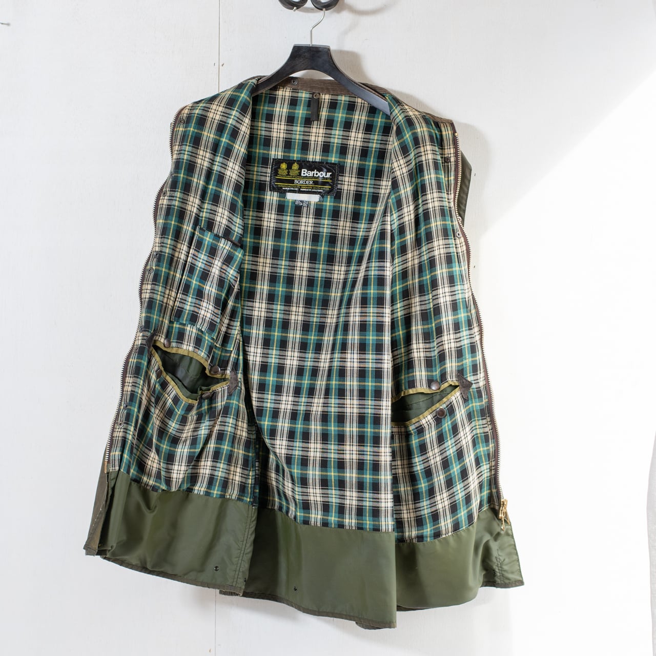 1980年誕生のモデル。1年先に生まれたNorthumbriaを軽量化し、Barbourのブランドカラーであるセージグリーンを採用して作り上げられたBorder。当時開発されたばかりのハンドウォーマーポケット装備、取り外し可能な二つのインナーポケットも採用と、フィールドで役立つ機能が盛り込まれたモデルです。