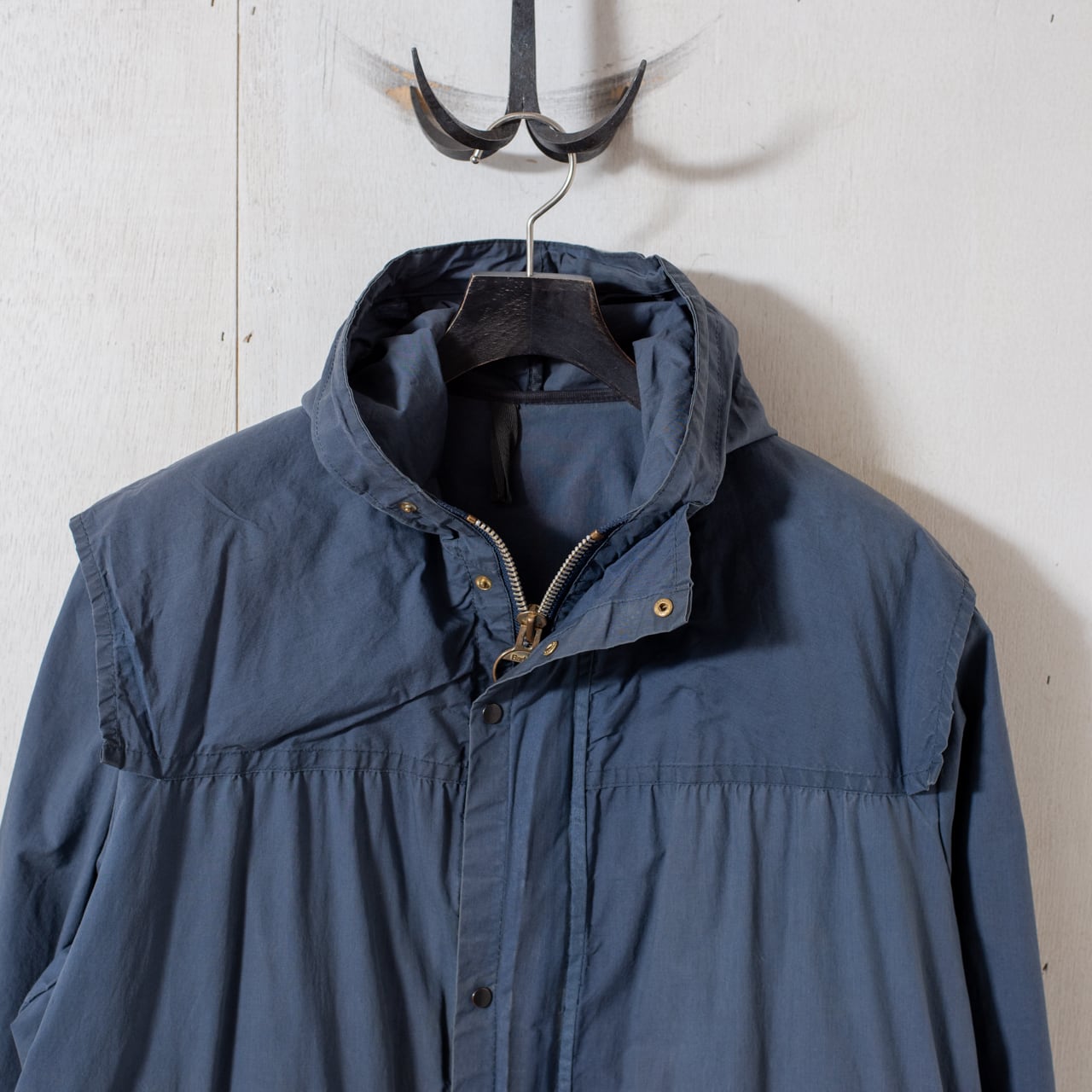 ウエスト部分のドローコードに方のレインヨークなど随所に機能をつき窮したディテール、