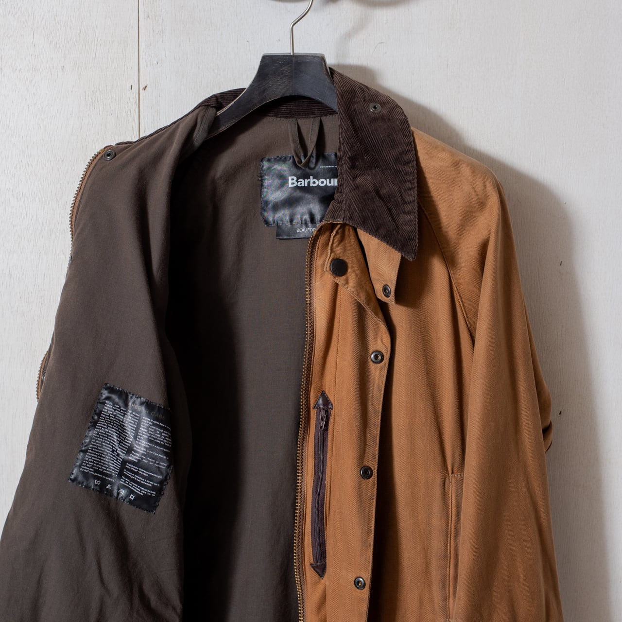 袖先もビデイルの重厚なリブより簡易的なベルクロ仕様の風除けが採用されているため、現代ではカジュアルフォーマル用のオーバーコートとしても理想的な作りです。