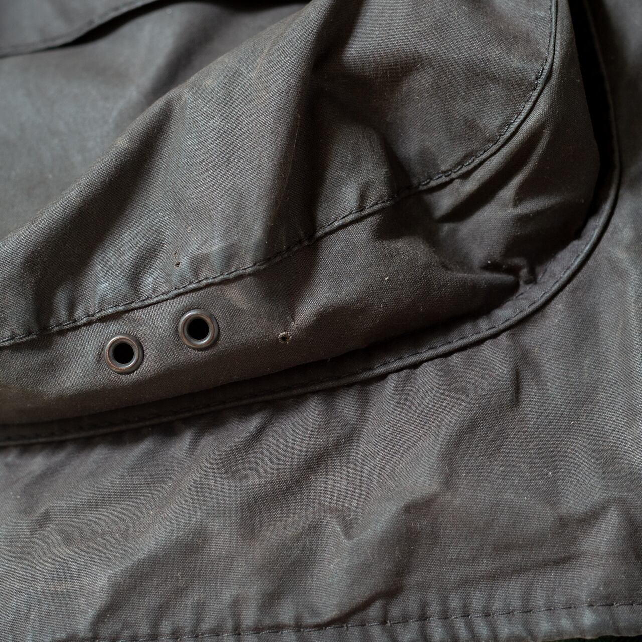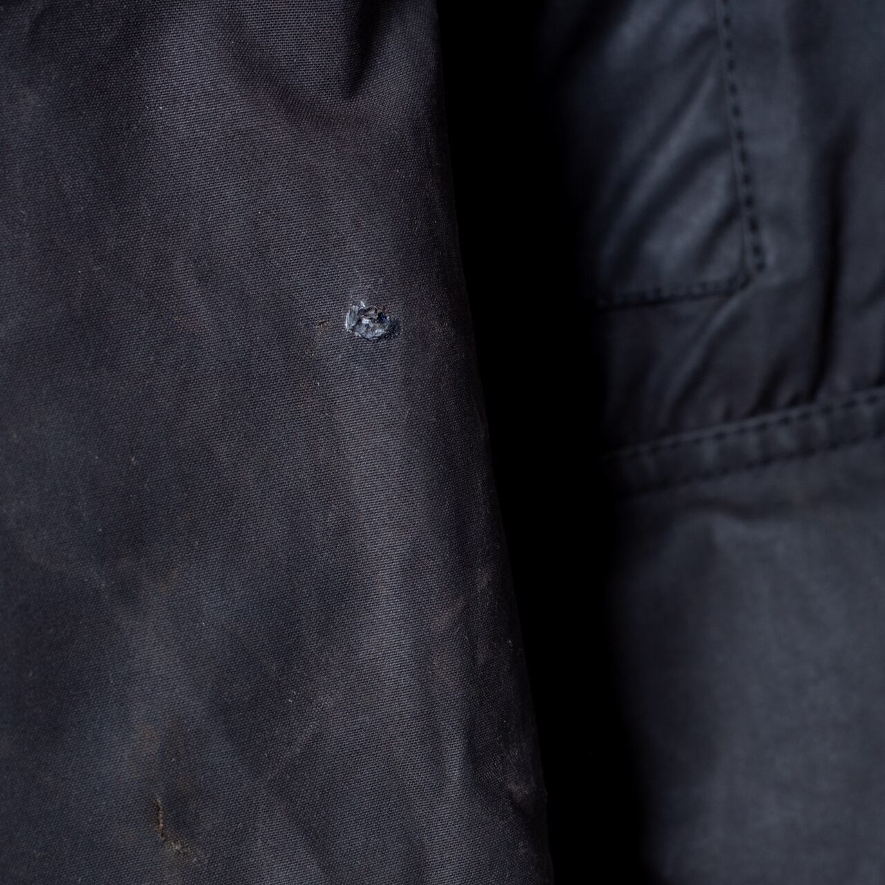 ・リペア施工箇所 / 小穴多数、左フラップポケット下パッチ補修