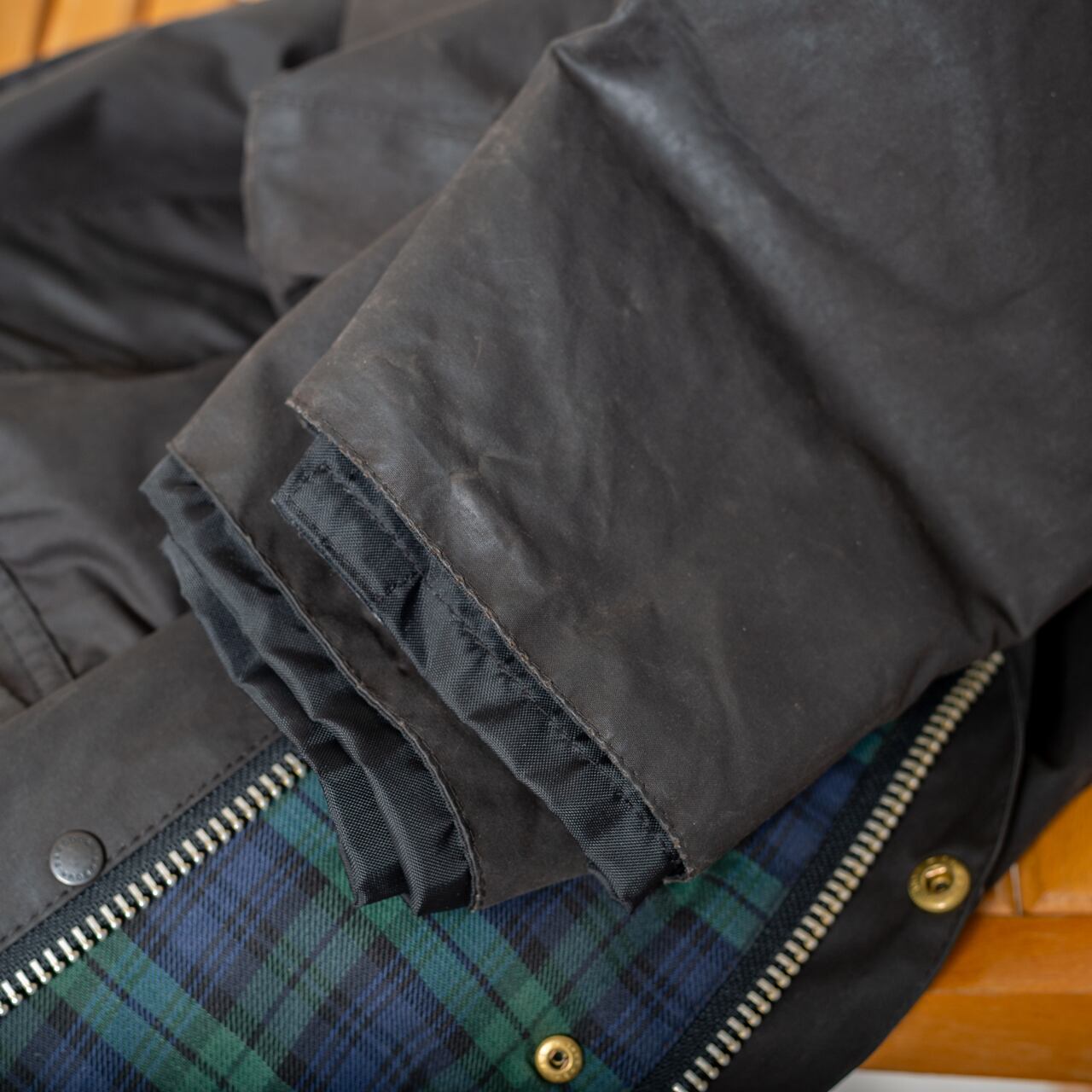 袖先もビデイルの重厚なリブより簡易的なベルクロ仕様の風除けが採用されているため、現代ではカジュアルフォーマル用のオーバーコートとしても理想的な作りです。